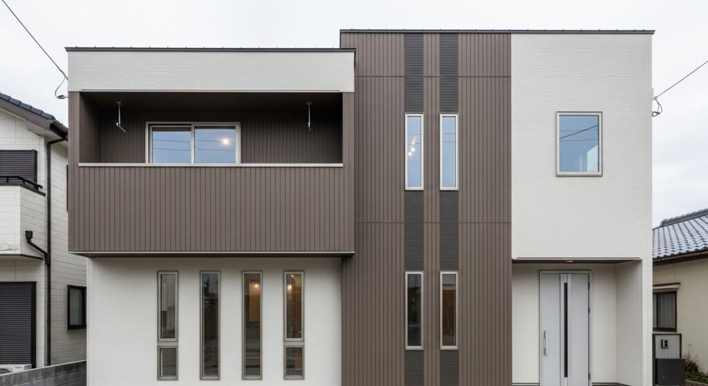 木目調サイディング自然な温かみベージュ×ダークブラウン、ホワイト×ウッド調が合いやすい